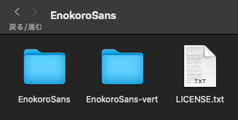 このダウンロードされたzipファイルを解凍したのが右の「EnokoroSans」と「EnokoroSerif」。