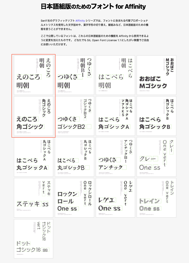 具体的なAffinity用のフォントについて説明されているので是非アクセスしてみて下さい。