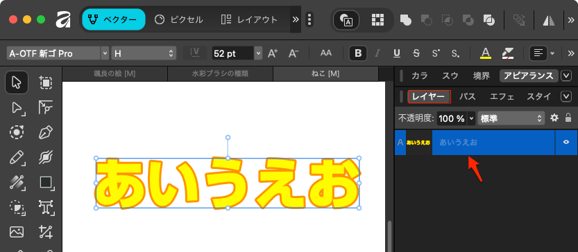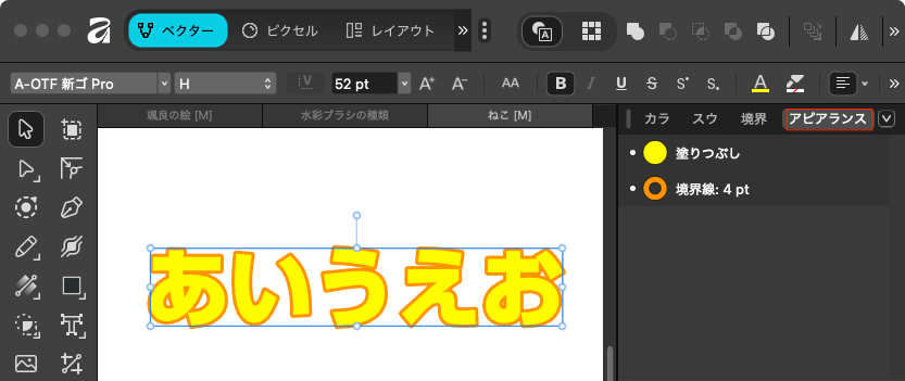 この機能はテキストを複製して、下のレイヤーに境界線を設定することでも同じ結果になるが、このアピアランスでの設定がスマートではあると思う。