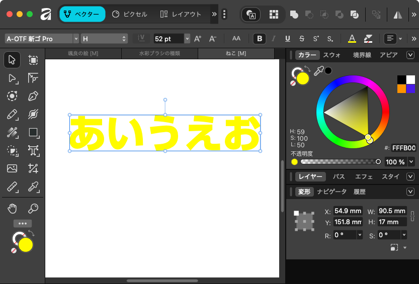 こんな感じに仕上げたい。これはテキストに限らず、塗りと線があればどんなものでも同じようにできるということになる。