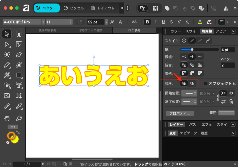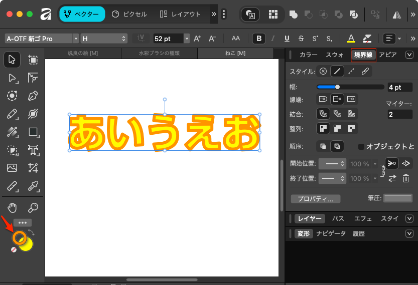 この機能はテキストを複製して、下のレイヤーに境界線を設定することでも同じ結果になるが、このアピアランスでの設定がスマートではあると思う。