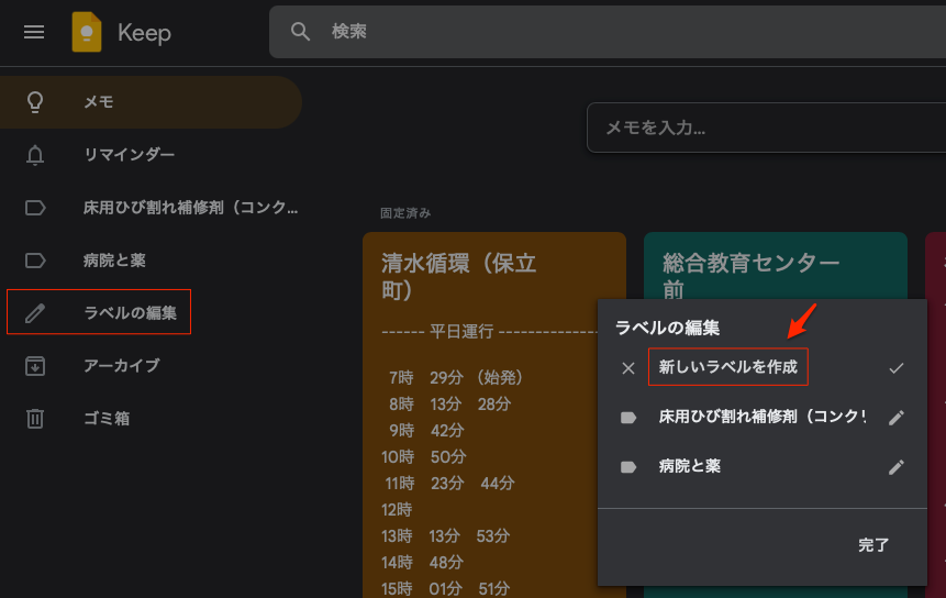 Google Keepは「ラベル」機能を使ってメモをグループ分けできる。