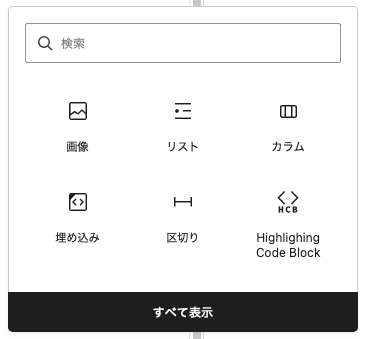 このブロックを追加する画面、デフォルトでは今まで「見出し」とか「段落」は必ず、表示されていたのだが表示されなくなった。