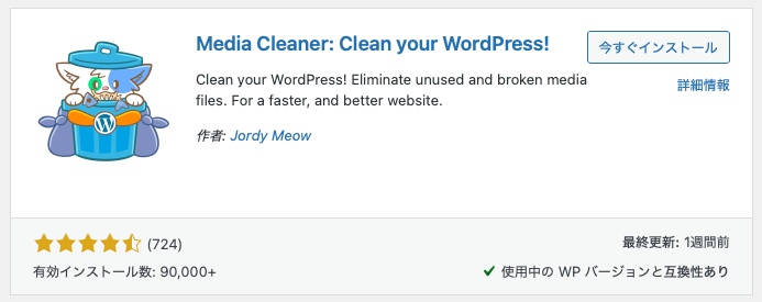 まずは「Media Cleaner」プラグインのダウンロードから。