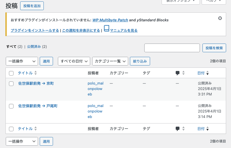 投稿ページを見ると変更されたページが投稿に移動しているのが確認できる。