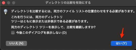 単に比較するだけなので、「今後このダイアログを表示しない」をチェックしても何の問題もない。