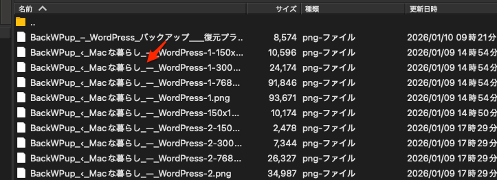 これをやっていないで、WordPressサイトの復元でFTPを使ってファイルをダウンロードしたとき、画像等の日本語ファイルは文字化けしていると認識されないので注意が必要。
