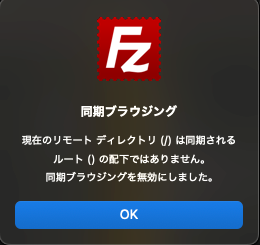 同期ブラウジングを有効にして接続すると、以下の警告が出る。