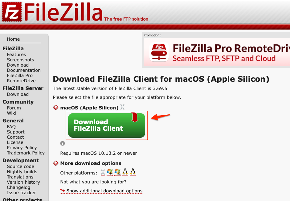 M1 Mac用のダウンロード公式サイト:https://filezilla-project.org/download.php?platform=macos-arm64