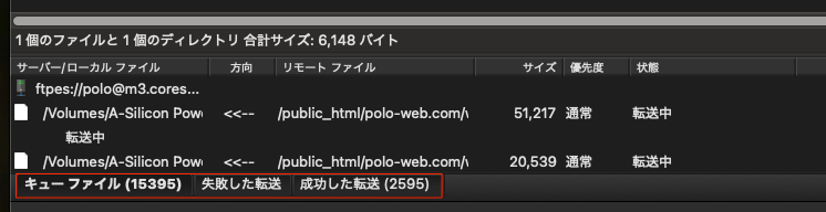 成功した転送数、失敗した転送数も分かるようになっているので便利である。