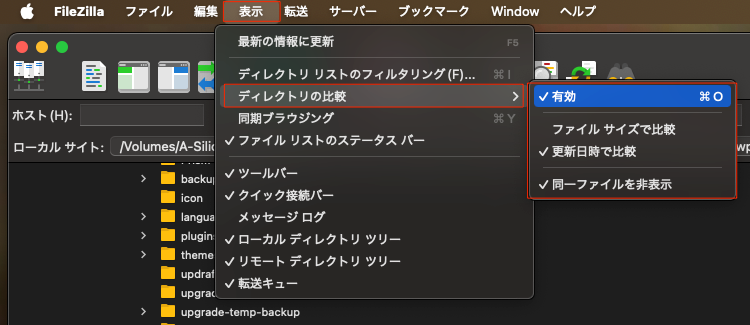 リモート(サーバー)とローカルのディレクトリ間の比較を行う