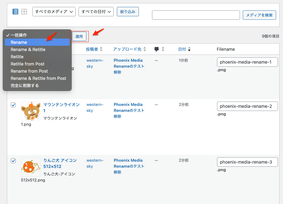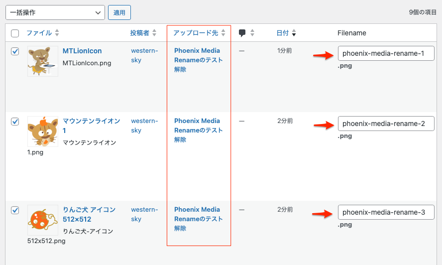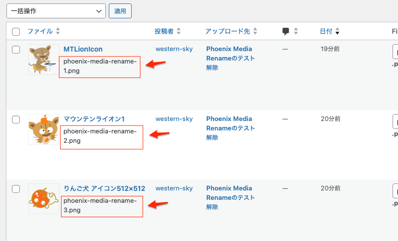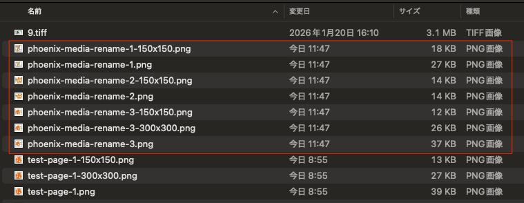 そんな時は、以下のようにphoenix-media-rename-1から3までの統一した画像のファイル名に変更すると分かりやすい名前になる。