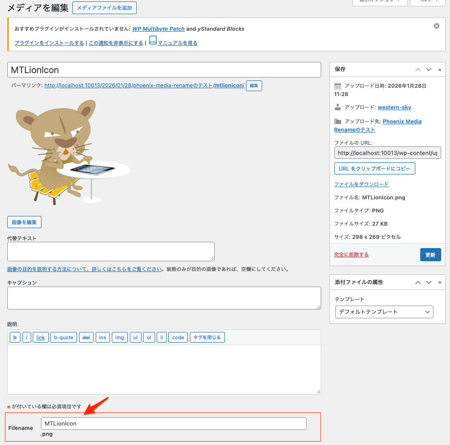 この編集からでもファイル名を変更できる。新しいファイル名を入力し、右サイドにある「更新」を押すと変更が反映されることになる。(しかし、リスト表示での変更が便利かも)