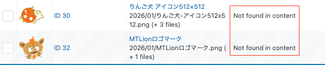 何度も言うが、「Not found in content」と表示されたファイルをすぐに完全削除せず、まずはサイト上の表示に問題がないかを確認。