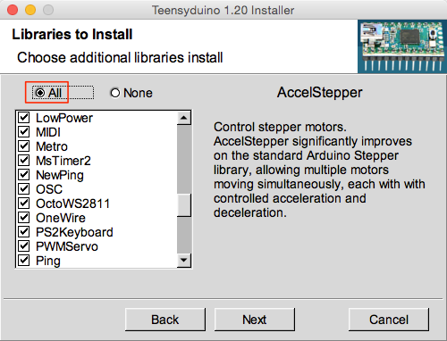 「Teensyduino」はTeensy用のライブラリをインストールします。