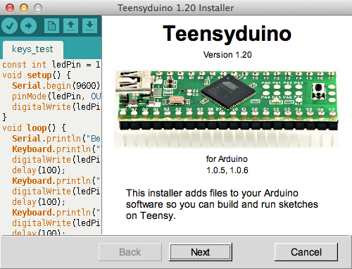 このインストーラを実行すると、ArduinoソフトウェアにTeensyサポートを追加します。