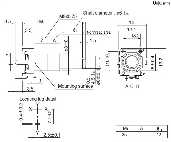 ・操作部長さ:25mm