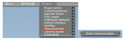 Plugins > TeensyControls > Show Communicationをクリックすると、