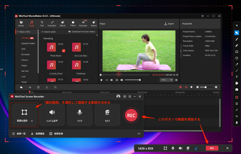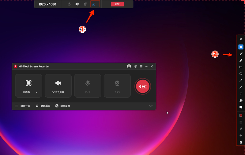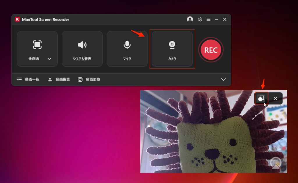 教育用動画やゲーム実況動画を作成する場合、以下の手順に従ってMiniTool Screen Recorderで画面録画とWeb カメラを同時に開始することができる。