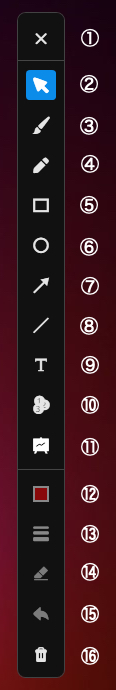 ゴミ箱:画面に追加したすべての注釈をクリアする。