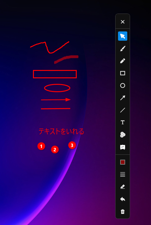 • 画面注釈(テキストやライン、簡単な図形を描画することができる