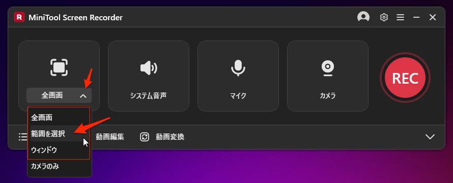 STEP ❶:録画範囲を選択する