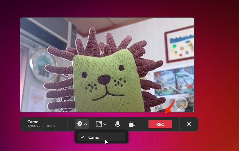 右下の「REC」ボタンをクリックすると、3秒のカウントダウン後にカメラ録画を開始することができるようになる。