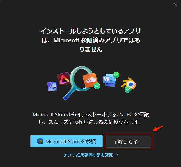 右側の「了解してインストール」をクリック。
