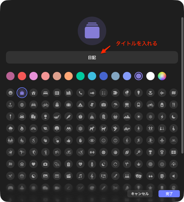 タイトルを入れて右下の完了をクリック。