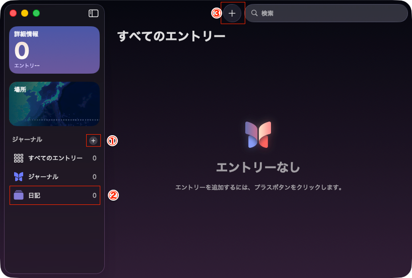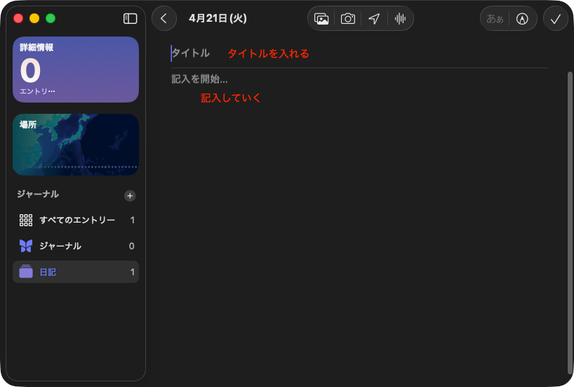 後はプラスボタンで毎日、日記を追加していくことになる。