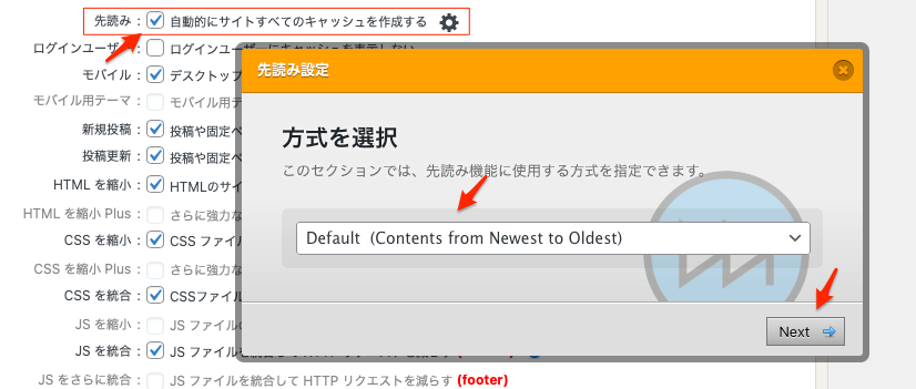 - 先読み:自動的にサイトすべてのキャッシュを作成(ユーザーが訪問する前に全ページのキャッシュを自動生成し、初回アクセスから高速表示を実現することができるようになる)