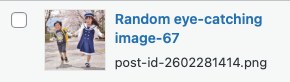 このRandom Post Thumbnailsプラグインによって、一々アイキャッチ画像を入れなくても自動的に適当に画像を入れてくれるので楽チンである。