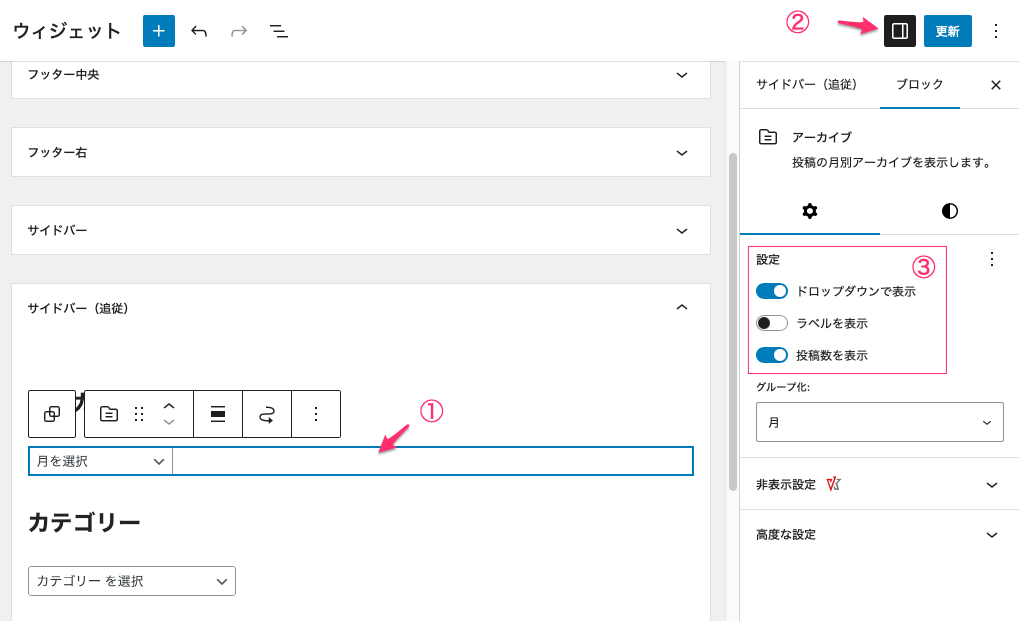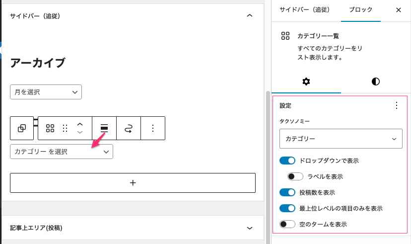 サイドバーの「アーカイブ」と「カテゴリー」設定
