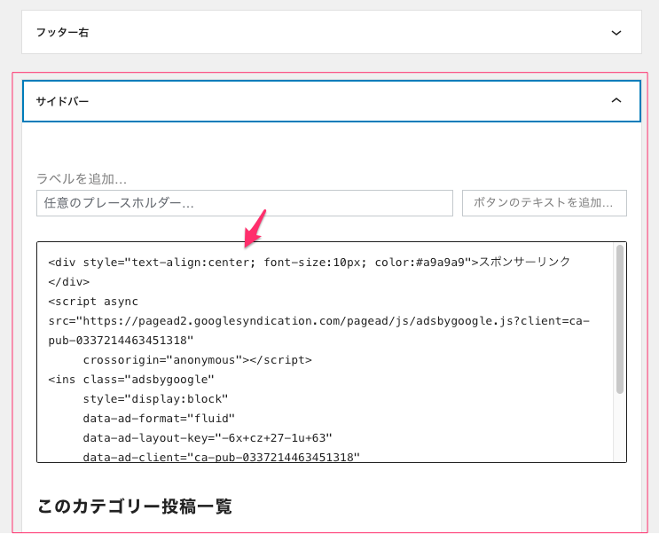 サイドバーの一番上にあるスポンサーリンクの設定