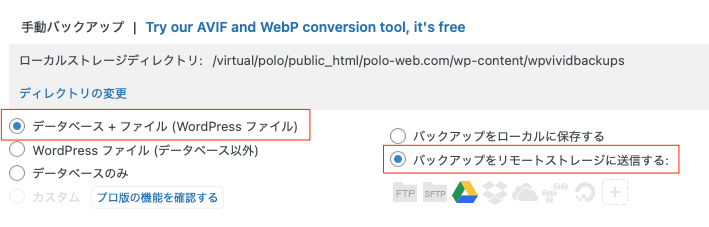 polo-web.comはWPvivid Backup & Migrationでバックアップ設定