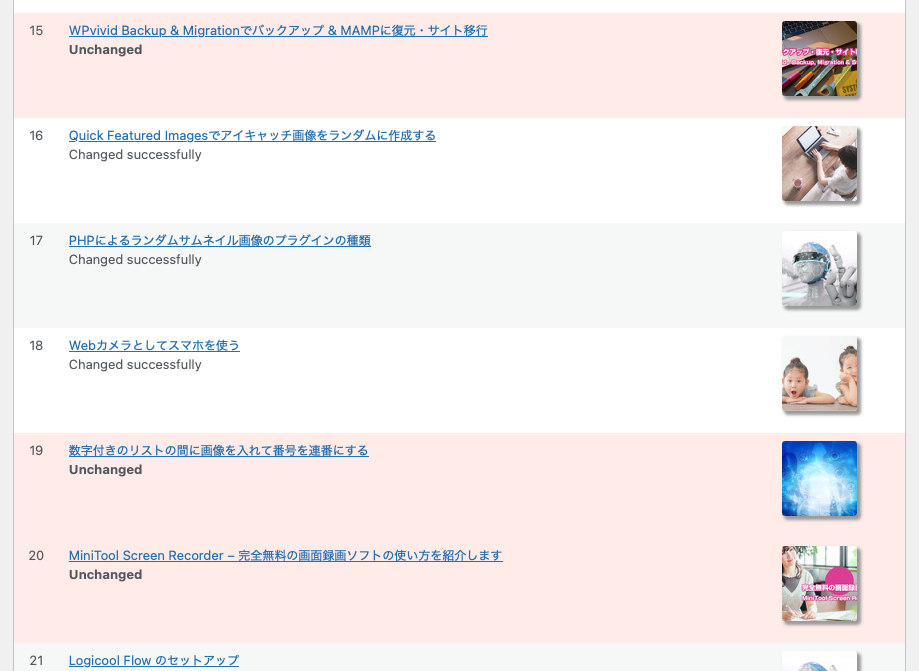 大量に変更する場合は、一度アイキャッチ画像を削除して、再度設定する必要がる。面倒になるがこの方法しかやる方法がない。
