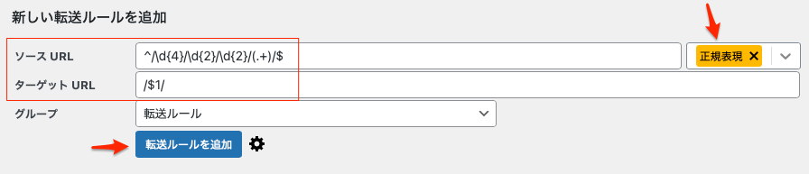 このようにサイト全体で構造(例:日付ベース→投稿名)を変えた場合、ルール設定が複雑になるため、プラグインの正規表現機能を使う必要になる。