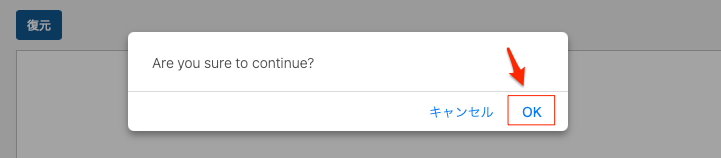 確認メッセージ「Are you sure to continue?(本当に続けますか?)」が表示されるので、「OK」をクリックします。