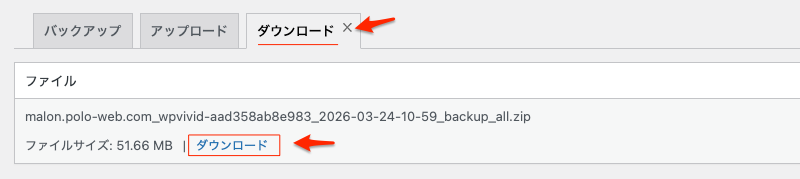 ファイル名はこんな感じ:malon.polo-web.com_wpvivid-aad358ab8e983_2026-03-24-10-59_backup_all.zip